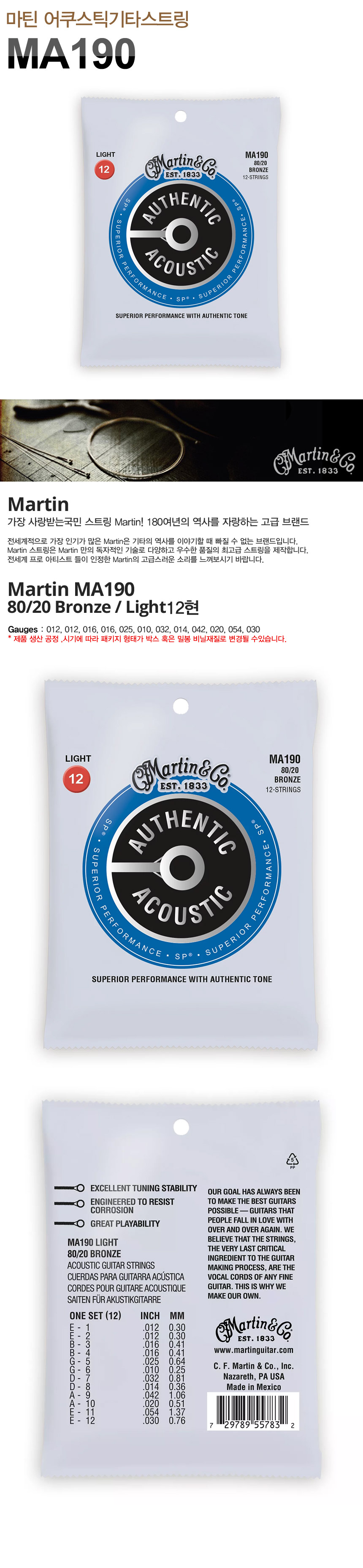 (현대Hmall)마틴어쿠스틱기타스트링 Martin MA190 80/20 Bronze / 12현 Light / 통기타줄/어커스틱