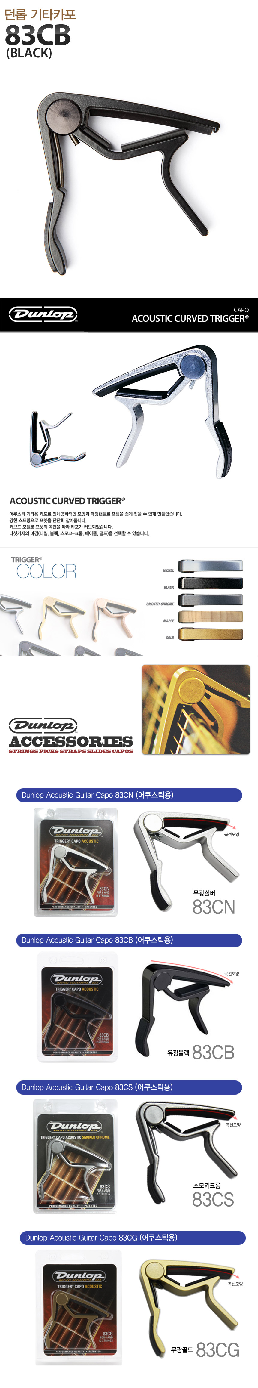 (현대Hmall)던롭 83CB 기타카포 /Dunlop Capo Acoustic Curved Trigger/어쿠스틱 기타 용 카포/유광블