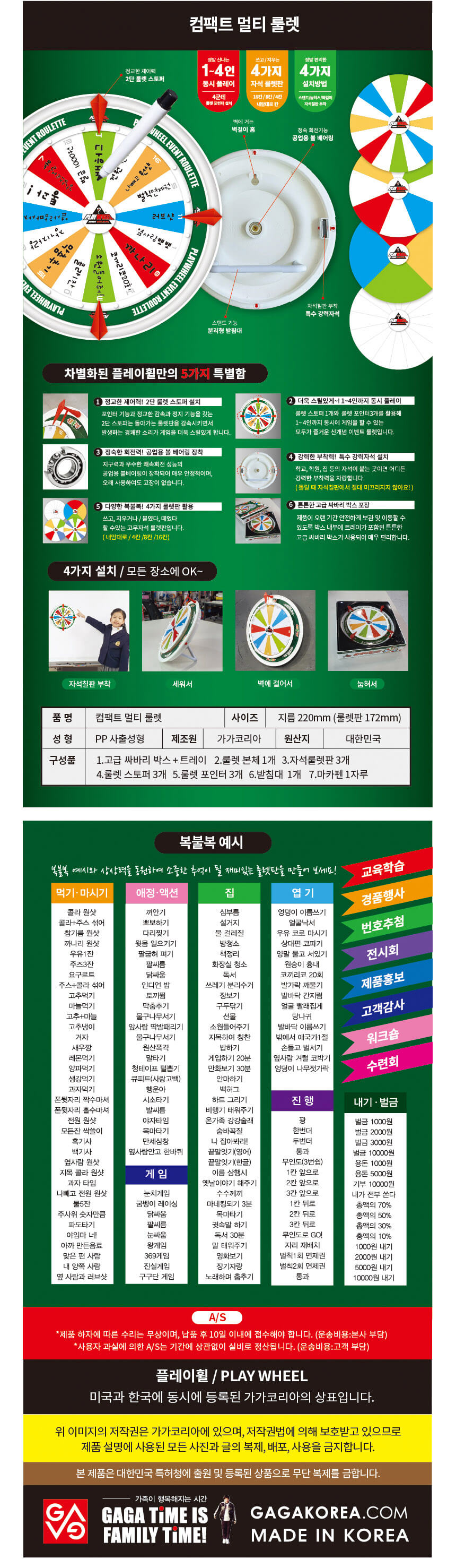 [상품명: 컴팩트 멀티복불복 룰렛 회전 다트판 보드게임 완구]