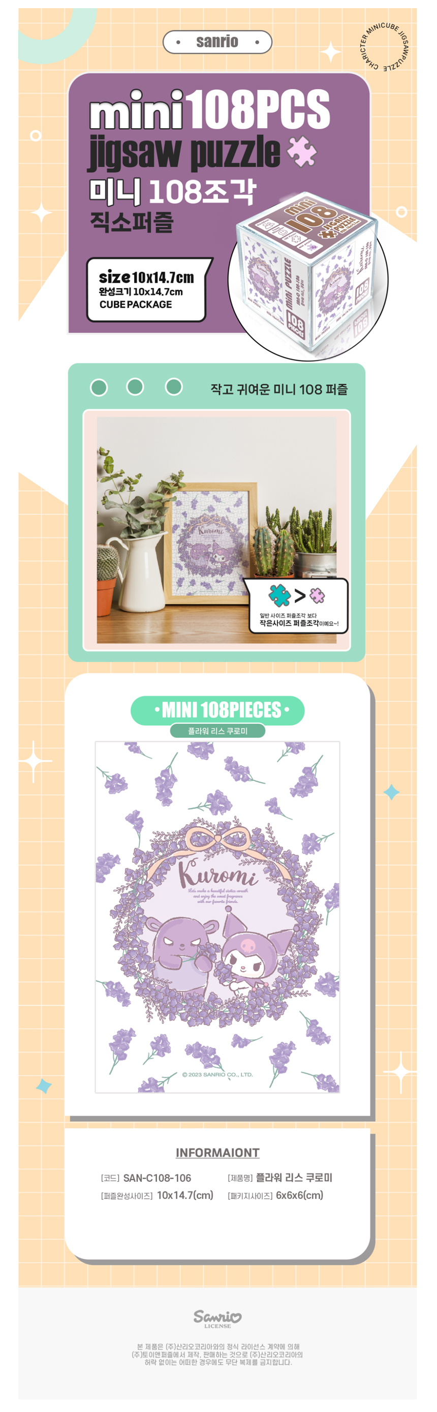 [상품명: 쿠로미 플라워리스 미니퍼즐 108pcs 1P 두뇌발달 게임]