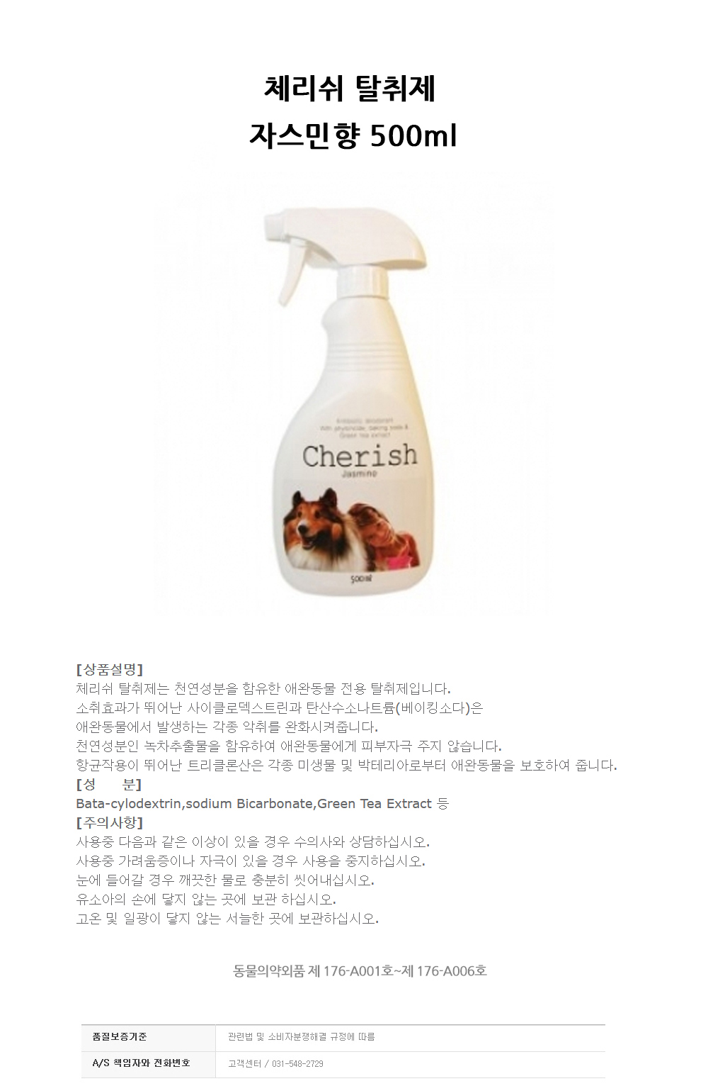 [상품명 : 체리쉬 탈취제 (자스민향) 500ml (애완용 탈취제) 체리쉬 탈취제 (자스민향) 500ml (애완용 탈취제)]