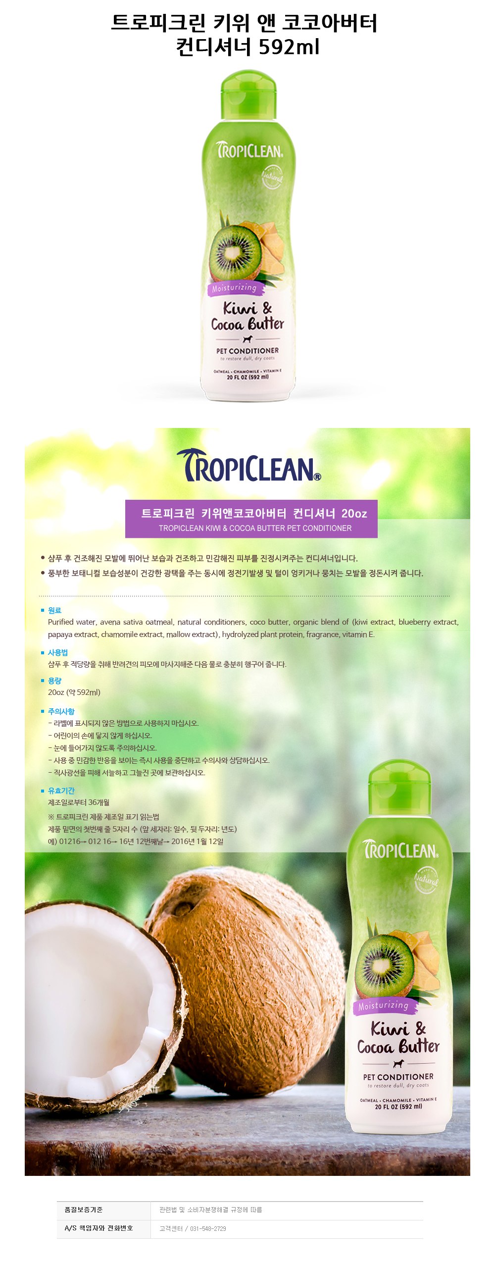 [상품명 : 키위 앤 코코아버터 컨디셔너 592ml 강아지 린스 키위 앤 코코아버터 컨디셔너 592ml 강아지 린스]