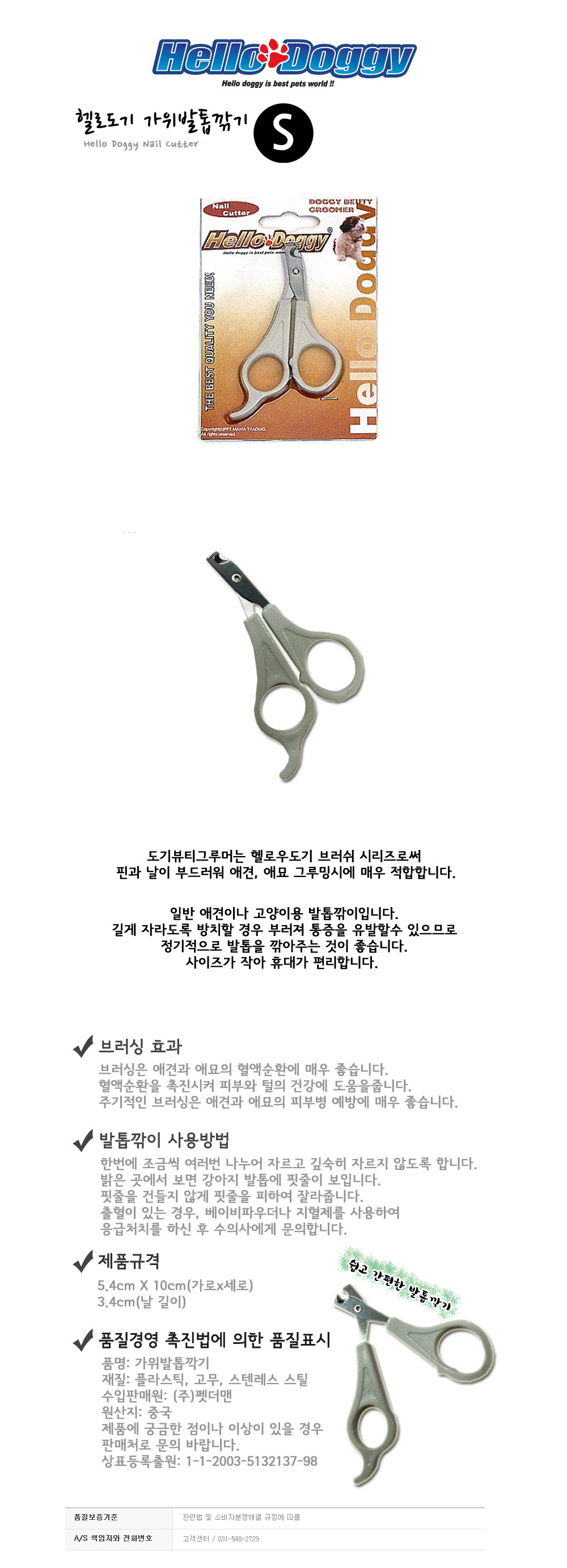 헬로도기 발톱가위 (S) (애완용품) 헬로도기 발톱가위 (S) (애완용품) 강아지 미용용