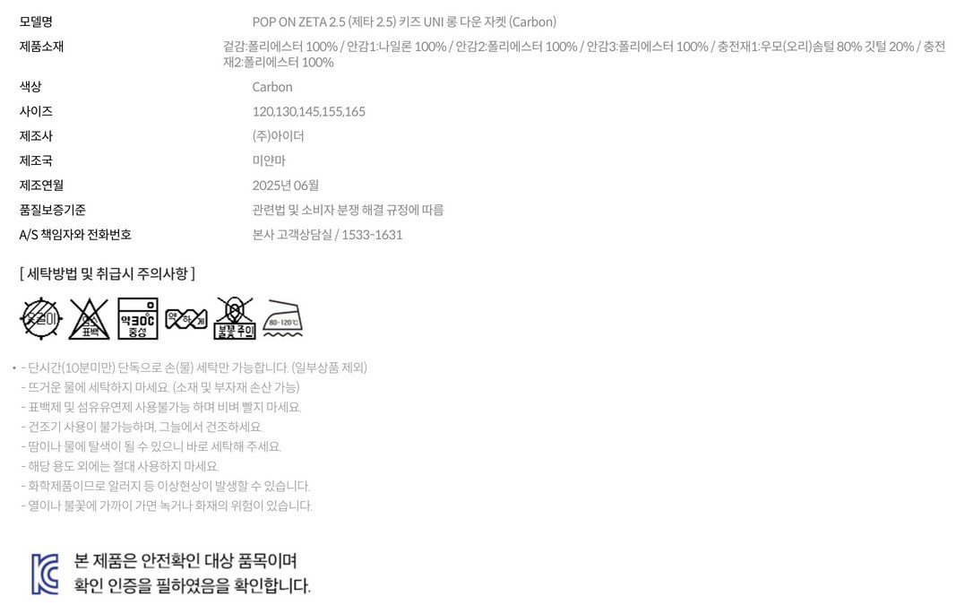 (대전신세계)25FW New arrival 최초가 360000원 제타 2.5 겨울 키즈 남녀공용 롱 다운 자켓 JUW25592