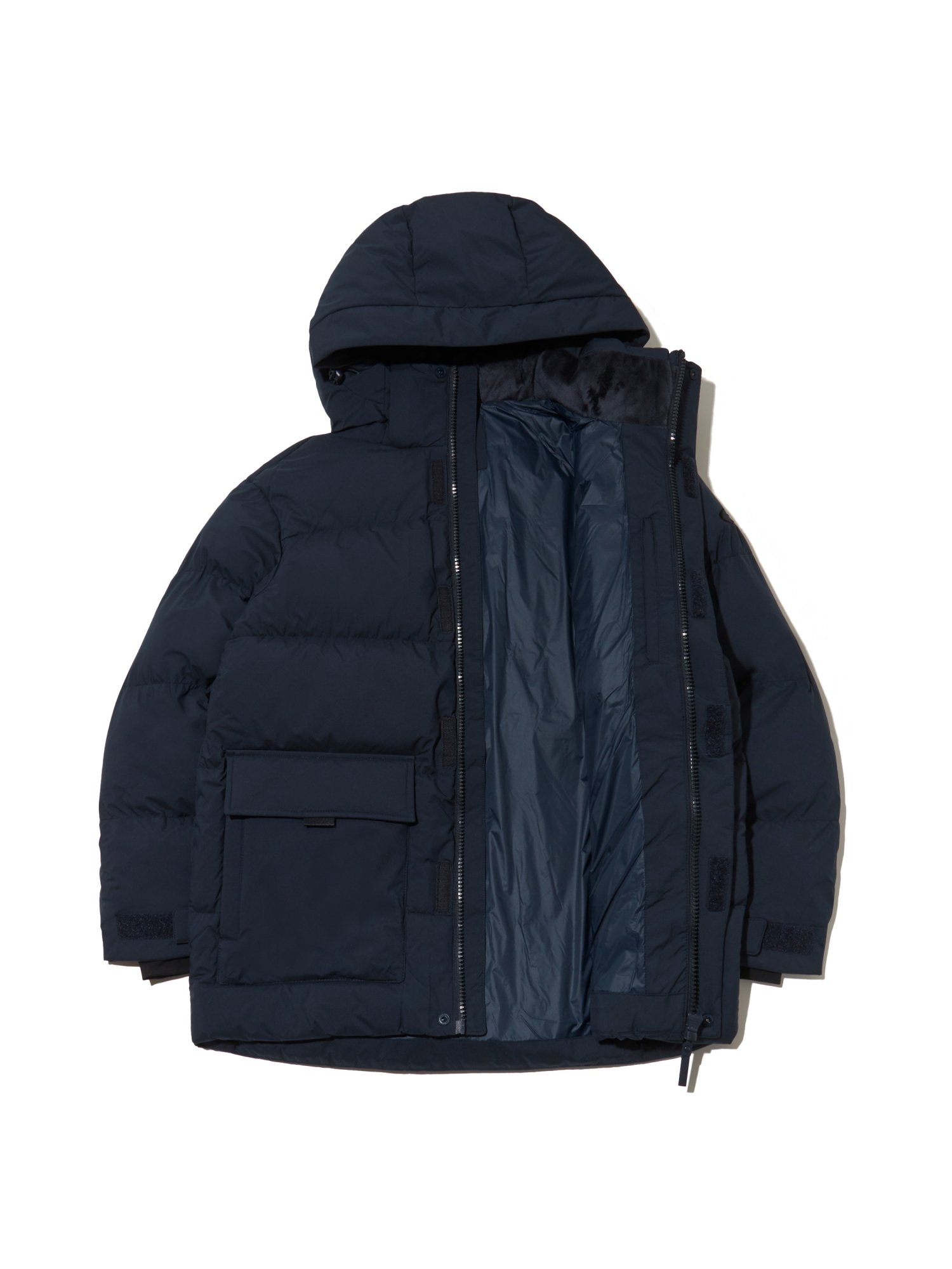 Product Info. | [ 베이직한 디자인의 남성 미들 다운 자켓 ]기본 퀄팅 디자인의 아웃포켓 디테일의 베이직한 다운 자켓 탈부착형 후드와 플랩형 아웃포켓 디자인으로 캐주얼한 착장 가능 제품 전면에 DUCK DOWN 80:20 소재를 적용하여 보온성 강화 |
