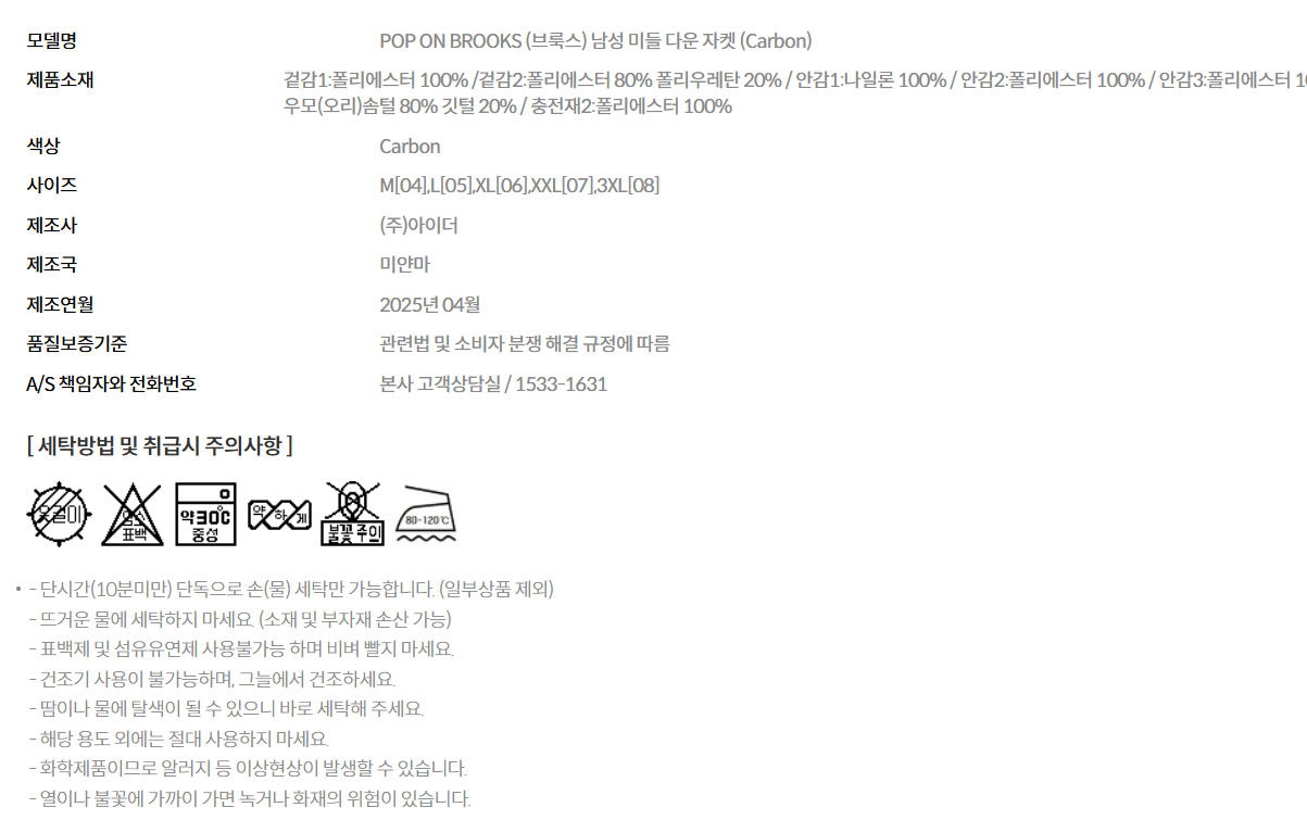 Product Name. | POP ON BROOKS (브룩스) 남성 미들 다운 자켓 |