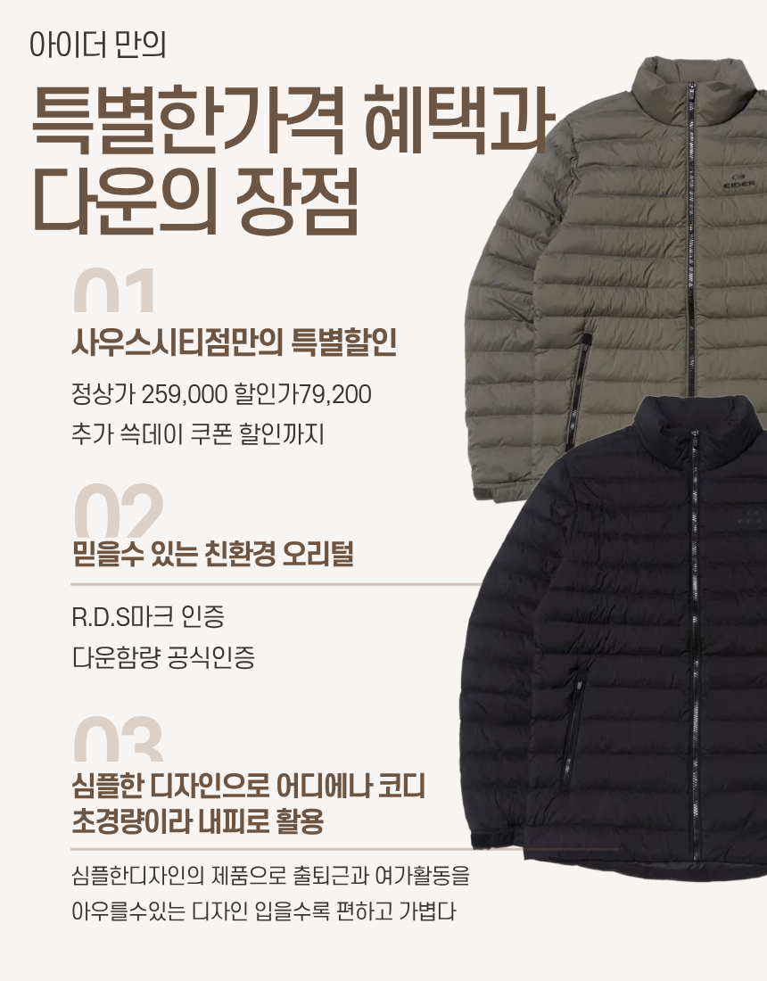 (신세계 사우스시티)DMW23581 간절기 겨울 남성/여성 기본형 베이직 경량 다운 자켓 선물 운동 내피 DW...