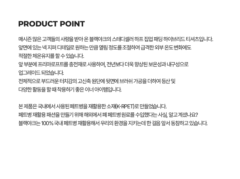 하프클럽/블랙야크 남성 프리마로프트 집업티 1BYTSW4004_BK