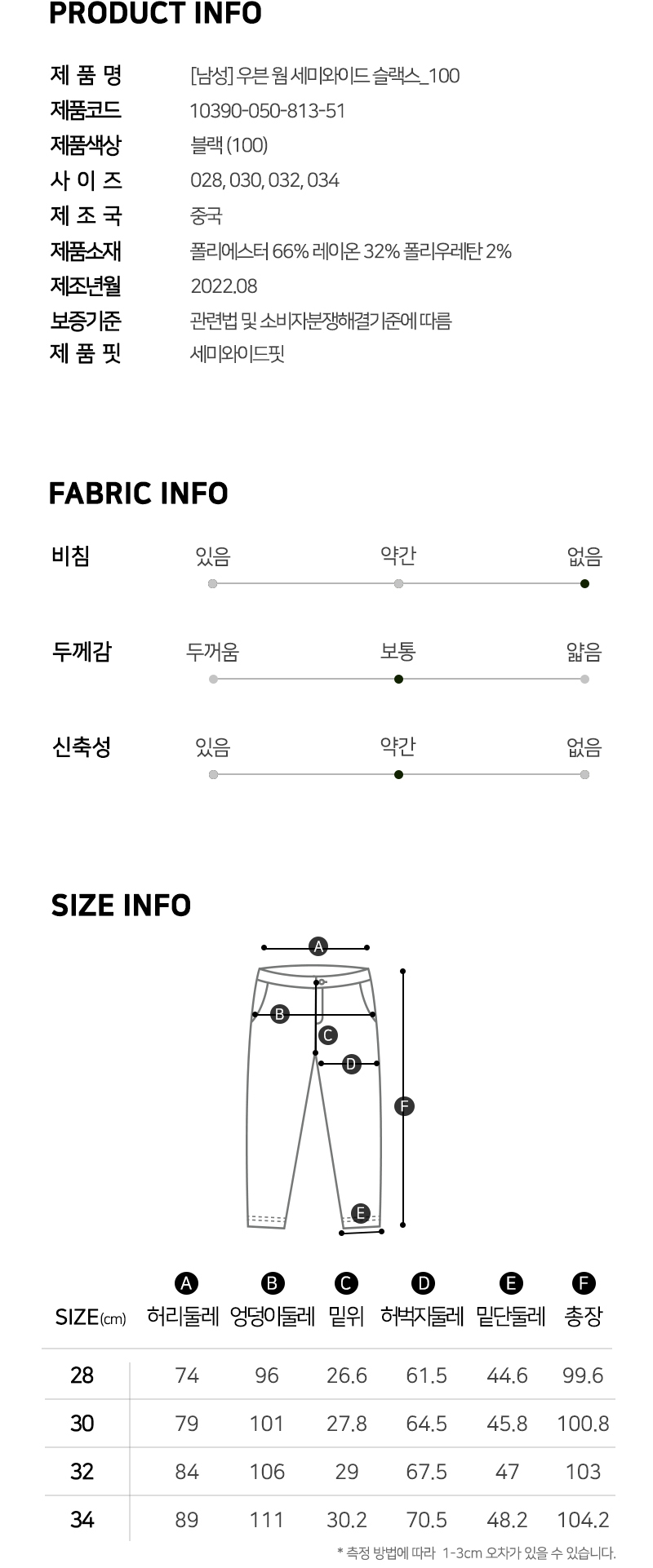 (현대Hmall)행텐 남성 우븐 웜 세미와이드 슬랙스 블랙