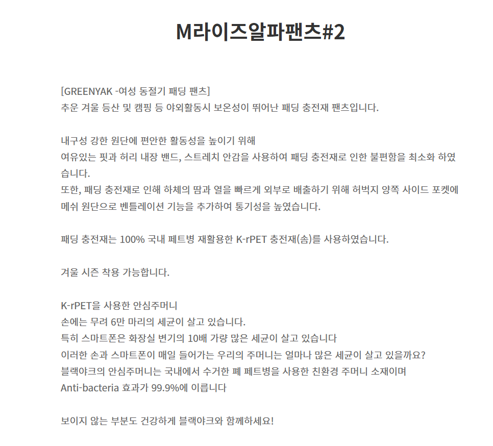 블랙야크 여성 라이즈 알파 팬츠 겨울 패딩 바지 1BYPNW3503
