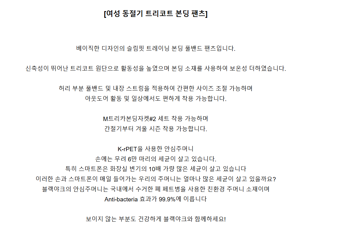 블랙야크 여성 M 트리카 본딩 팬츠 활동성좋은 겨울 기모 바지 1BYPNW3504
