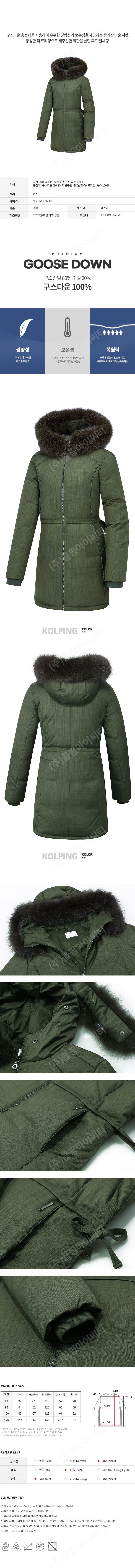 콜핑 여성 겨울 구스다운 폭스퍼 보온 등산 경량 롱패딩 자켓 KSC673RJ1W