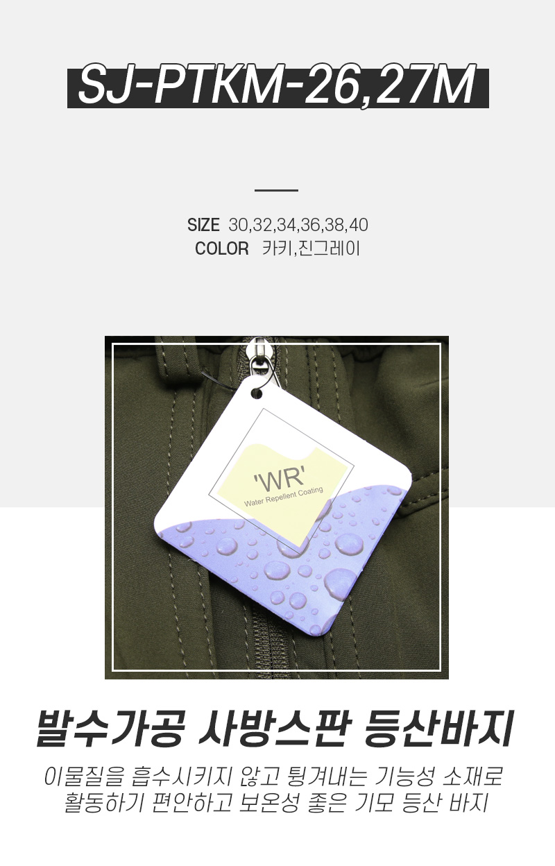 파파브로남성 사방스판 발수가공 사이드밴딩 기모안감 등산바지 SJ-PTKM-26M27M