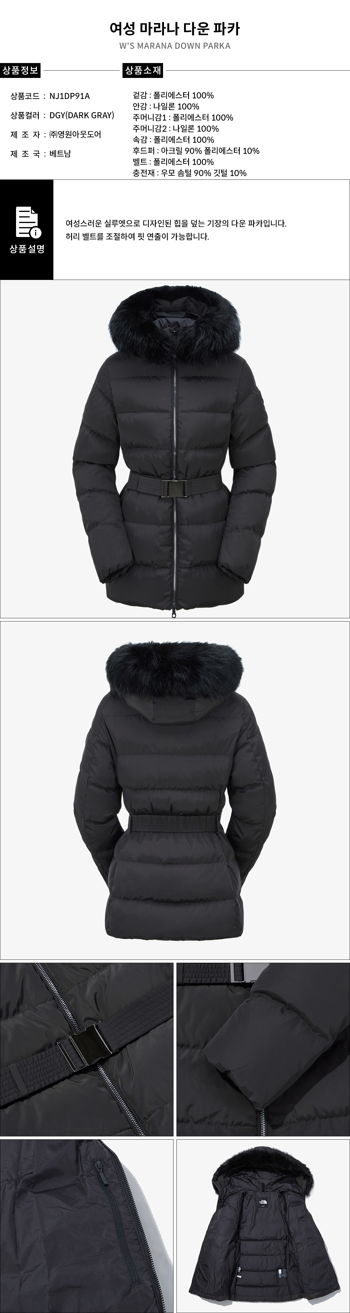 여성 마라나 다운 파카 NJ1DP91A_DGY