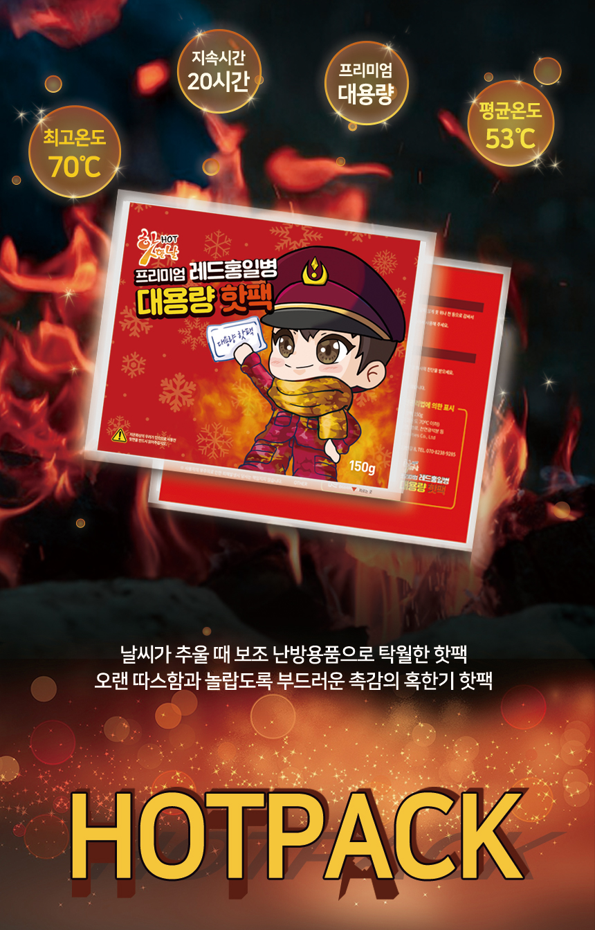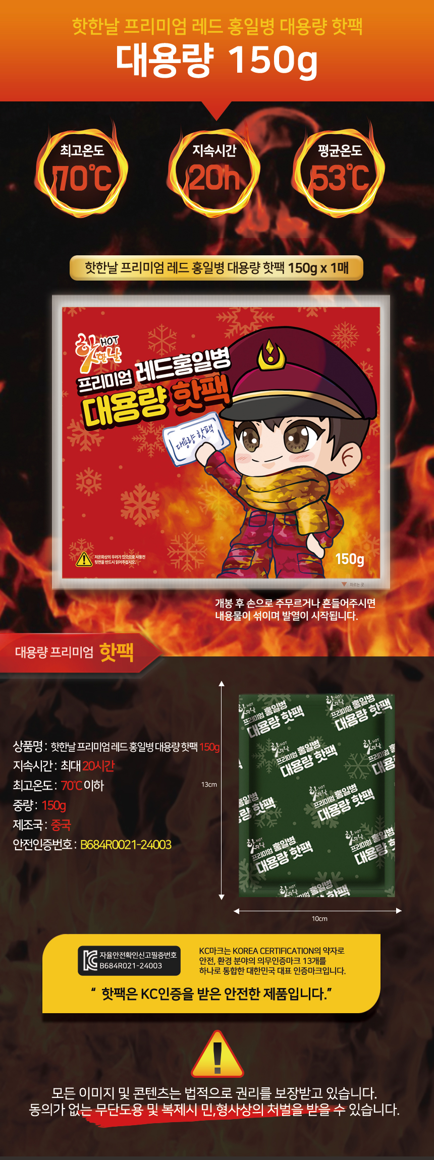 핫한날 프리미엄 레드 홍일병 핫팩 150g 1매 대용량 군용 캠핑 군대 군인 흔드는 핫팩
