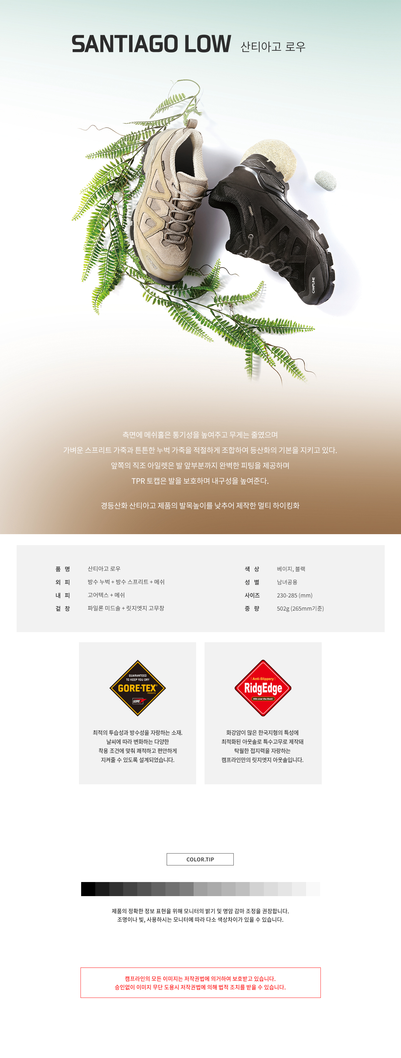 (현대Hmall)캠프라인 산티아고 로우 남녀공용 하이킹화 워킹화 트레킹화 운동화 고어텍스