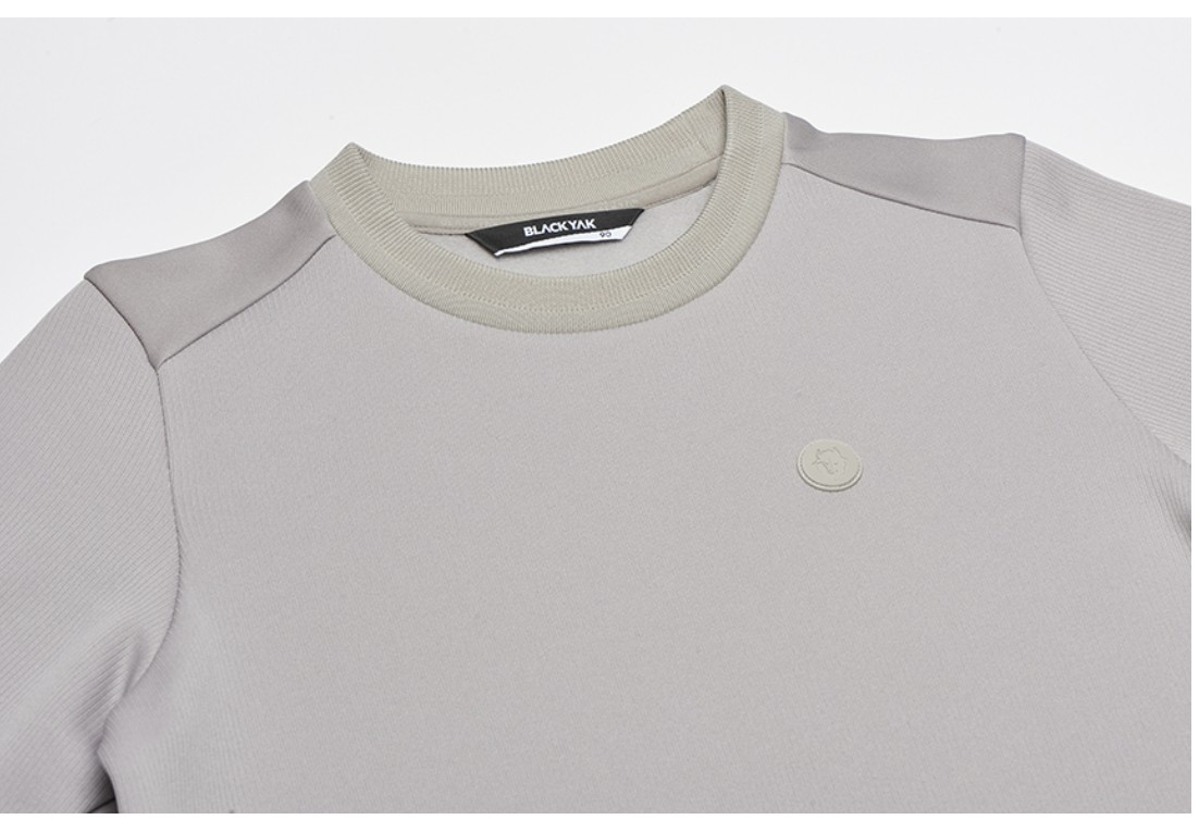 겉면에 골지 느낌의 립조직이 있으며 안쪽면에는 기모처리가 되어 있어 겨울철 이너로 착용하기 좋은 아이템입니다.