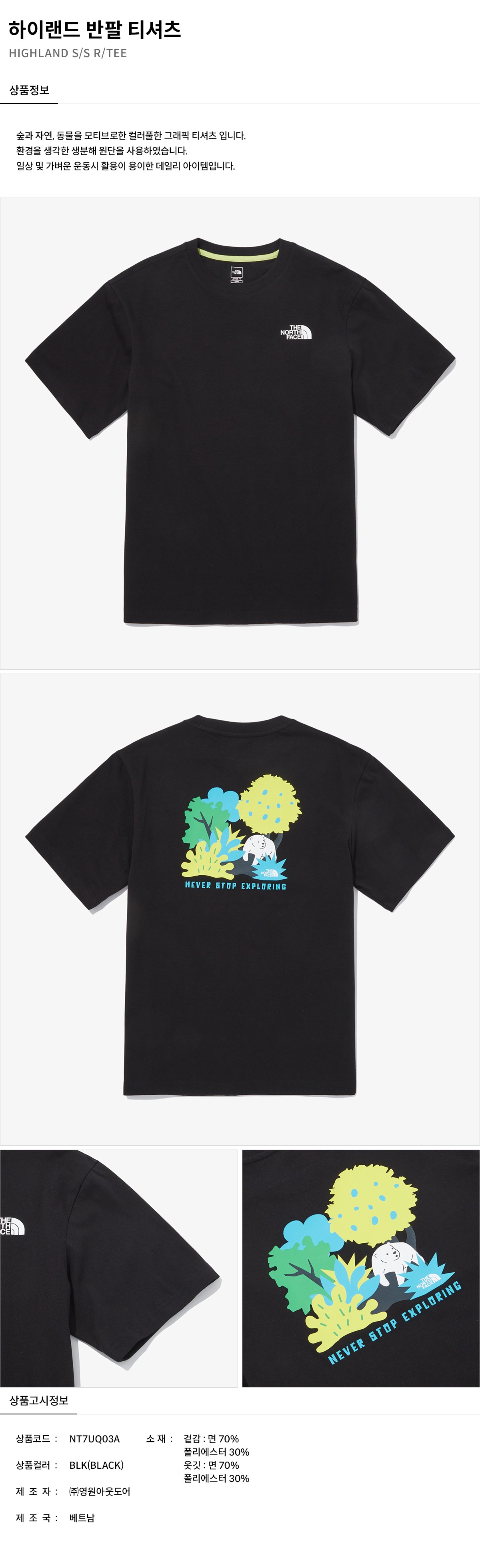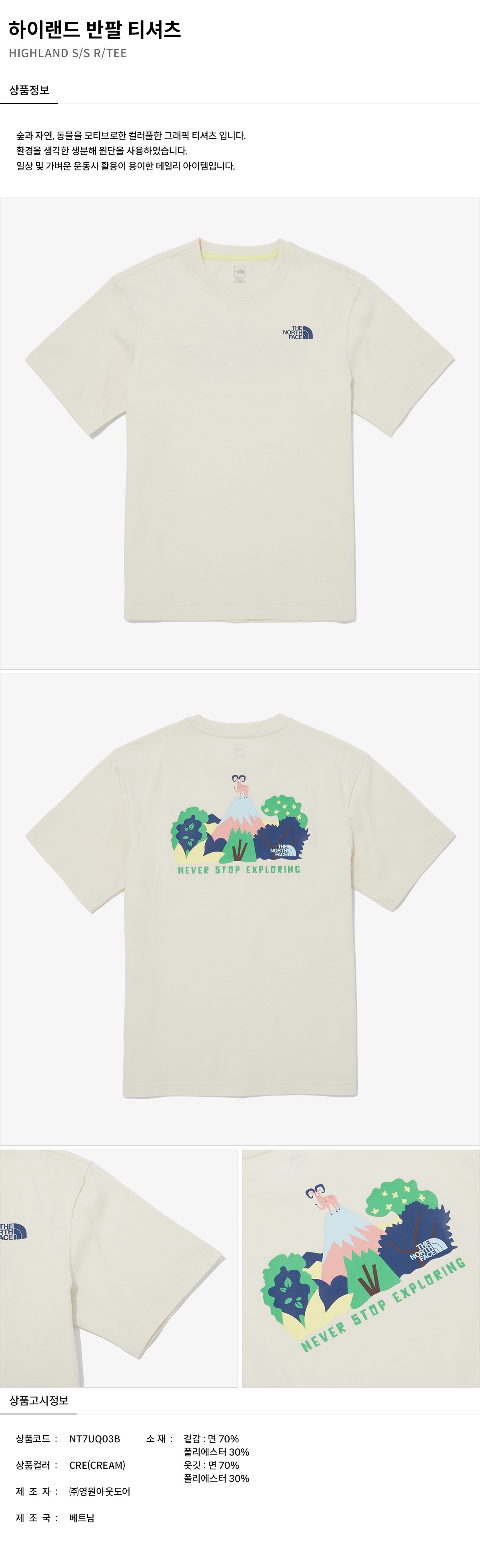 하이랜드 반팔 티셔츠 NT7UQ03 3종 택1