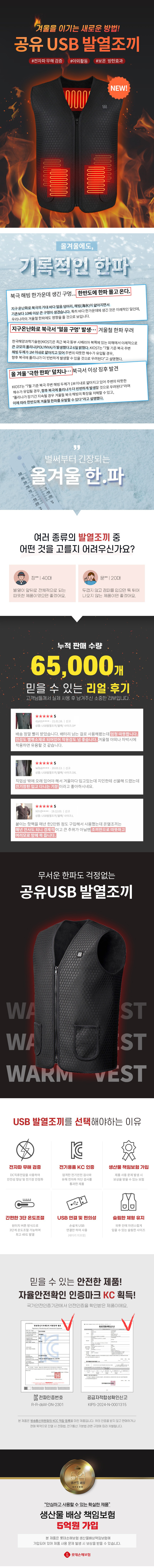 발열조끼 USB 열선 온도제어 온열 방한 난방 보온 등산 캠핑 골프 낚시