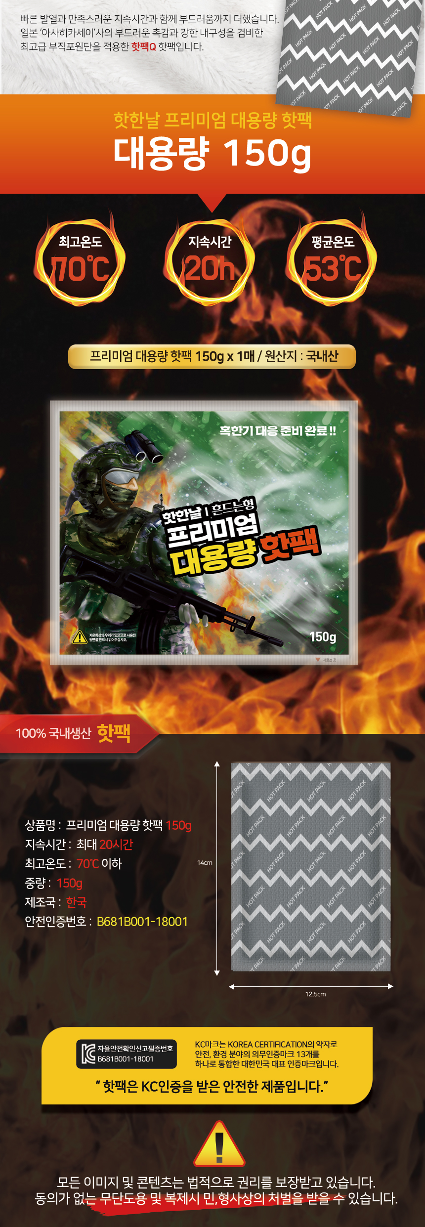 안전인증 국산 핫한날 대용량 군인핫팩 흔드는핫팩 150g 30매 포켓핫팩 손난로 군용핫팩