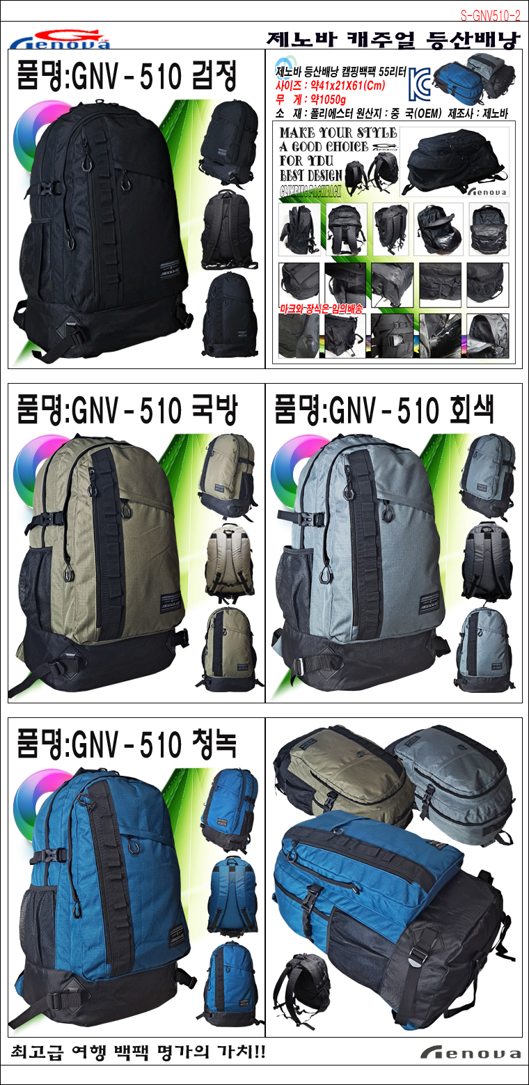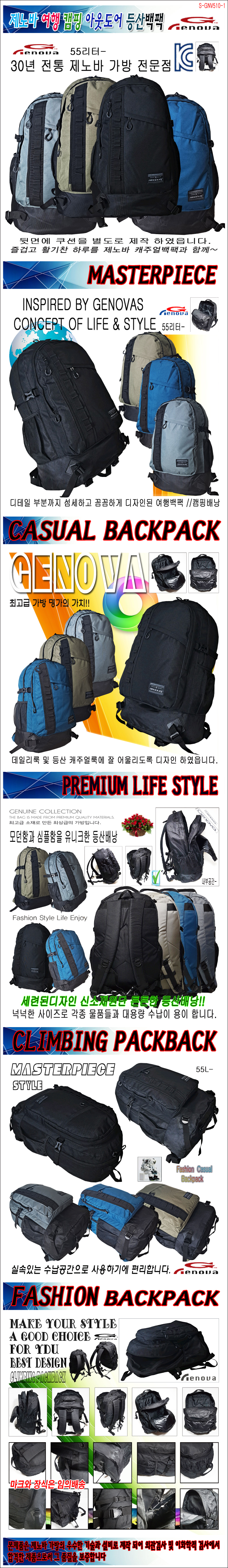 늘푸른백화점 제노바GNV510 등산배낭 55L 캠핑 아웃도어배낭 캐주얼백팩 스포츠백팩