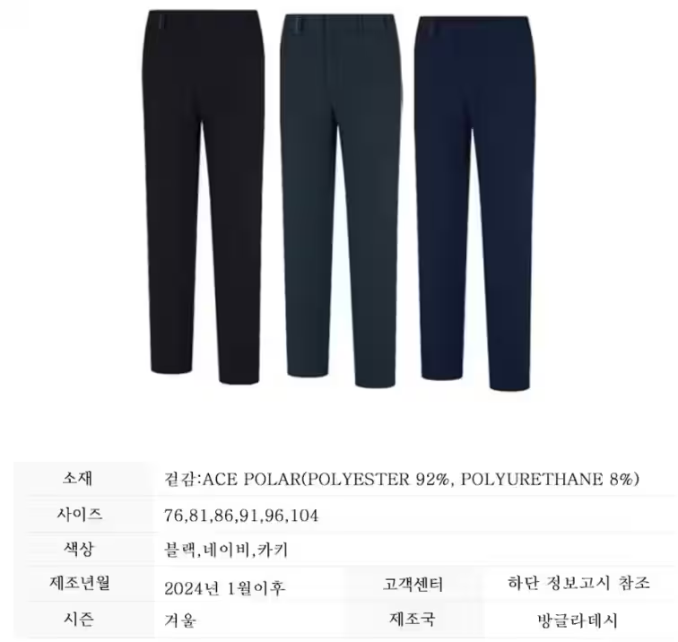 (신세계마산점)KVP0879M 남여 겨울 방한 라이렉스 기모 본딩 팬츠 KVP9587