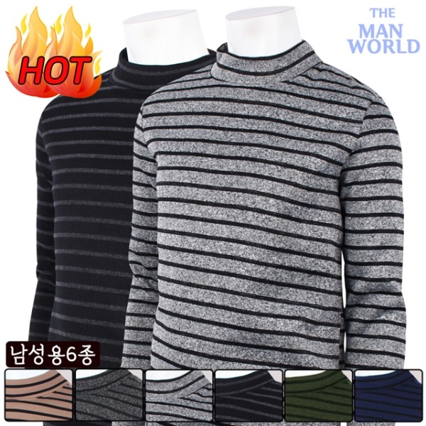 기타 (패플) 더맨월드더맨월드 WF줄무늬기모반목티 남성 겨울 반폴라티 작업복 목