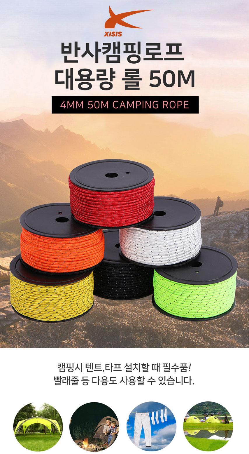 캠핑용 반사 고정 로프 50m 대용량/텐트/등산/캠프/캠핑/텐트용/타프/줄/노끈/빨래/안전/밧줄/스트링