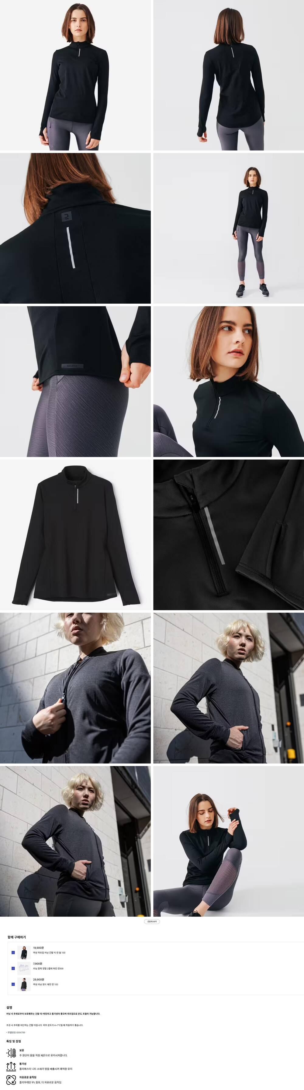 데카트론 여성 하프집업 러닝 긴팔 티 런 웜 100