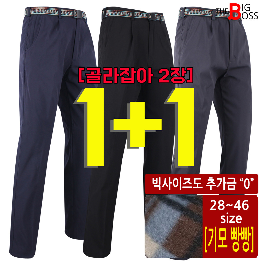 더빅보스WD무지기모바지1+1 겨울 남자 고급 원턱 무지등산바지