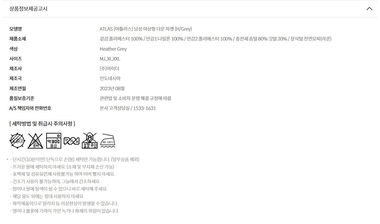 • 상품 정보 문의 : 본점 브랜드 매장 (023105260)