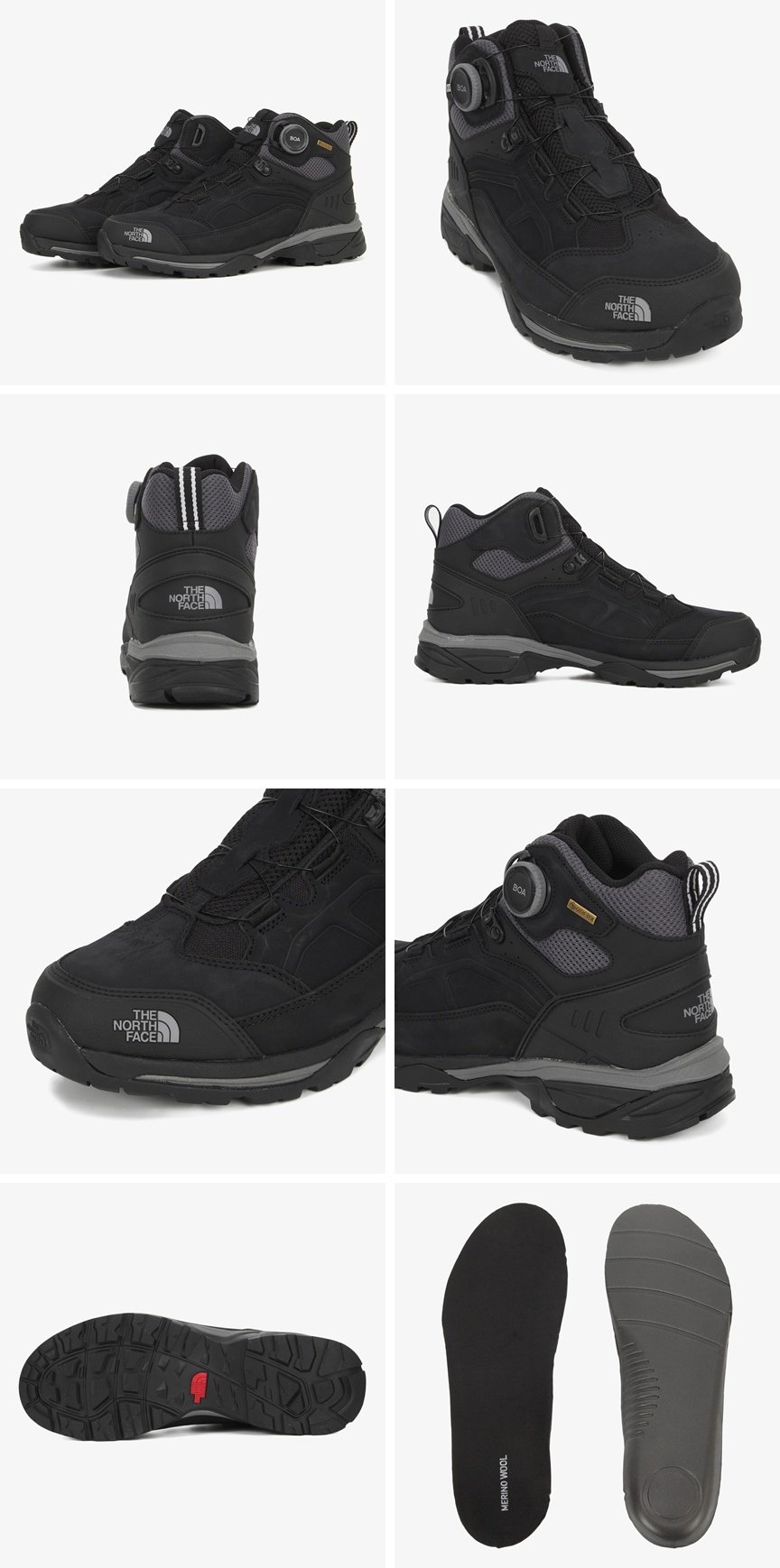 BOA® Fit System을 적용해 빠르고 쉽게 정교한 피팅이 가능하며, 방수, 발수성이 좋은 GORE-TEX와 누벅 가죽소재를 적용한 미드컷 고어텍스 등산화 입니다. 접지력 및 내구성이 우수한 아웃솔이 적용되었습니다. 속건성이 우수한 MERINO WOOL INSOLE이 적용되어 쾌적함이 유지됩니다.