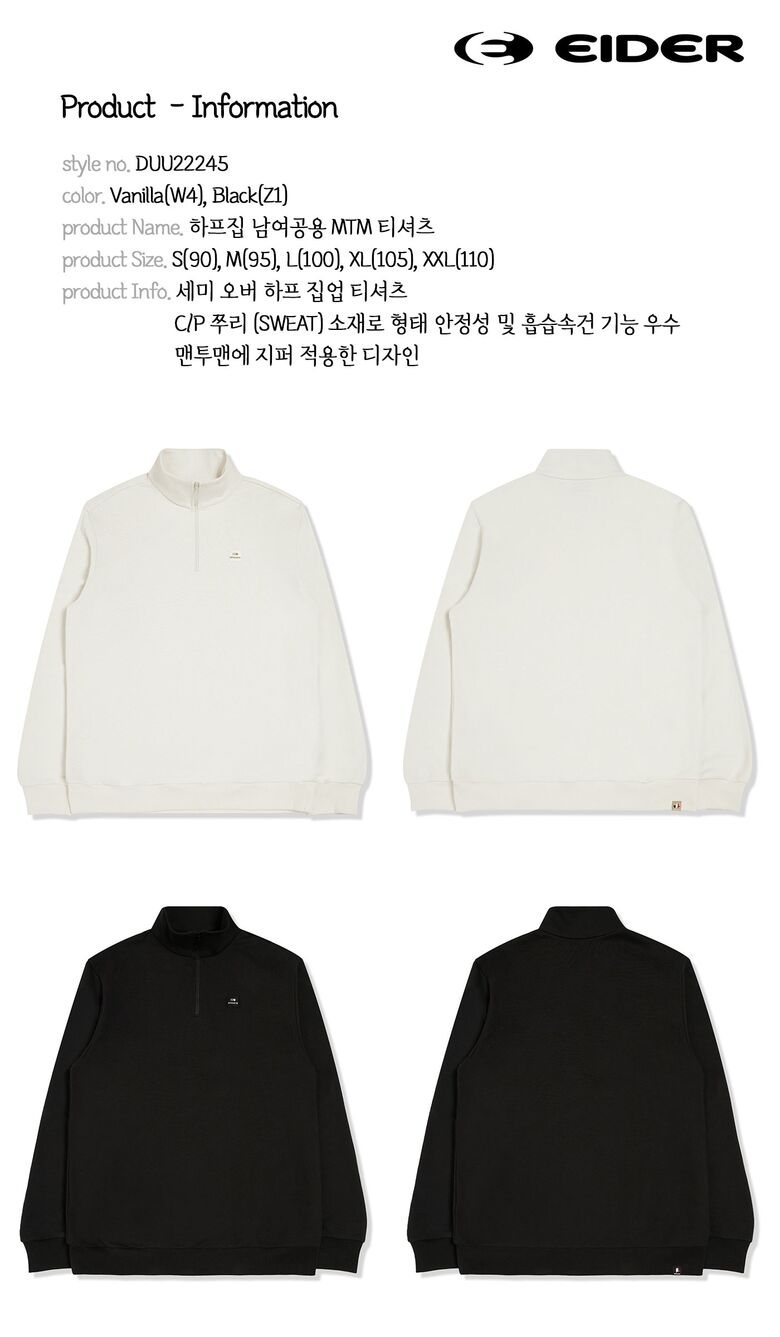 아이더 남녀 공용 하프집 UNI 세미 오버 맨투맨 짚업 티셔츠 DUU22245