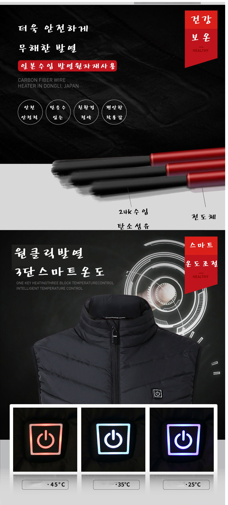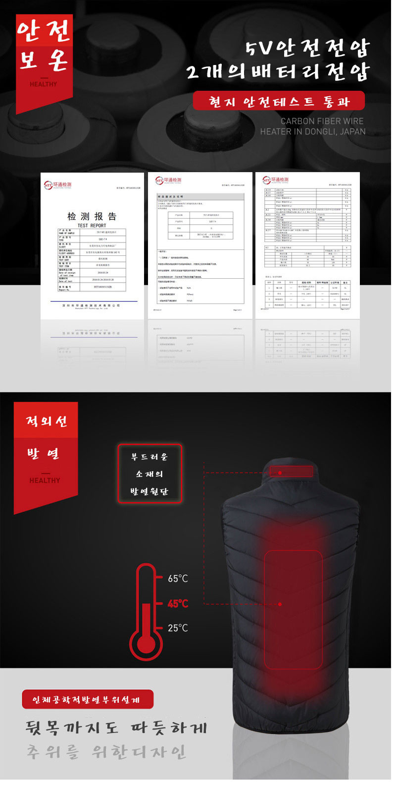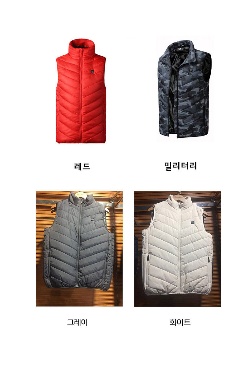 USB 발열 조끼 온열 열선 방한 보온 패딩 빅사이즈 S~6XL