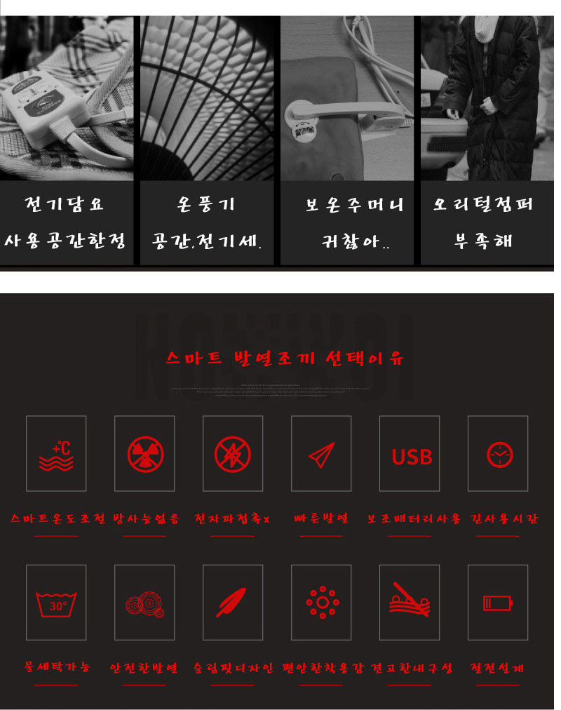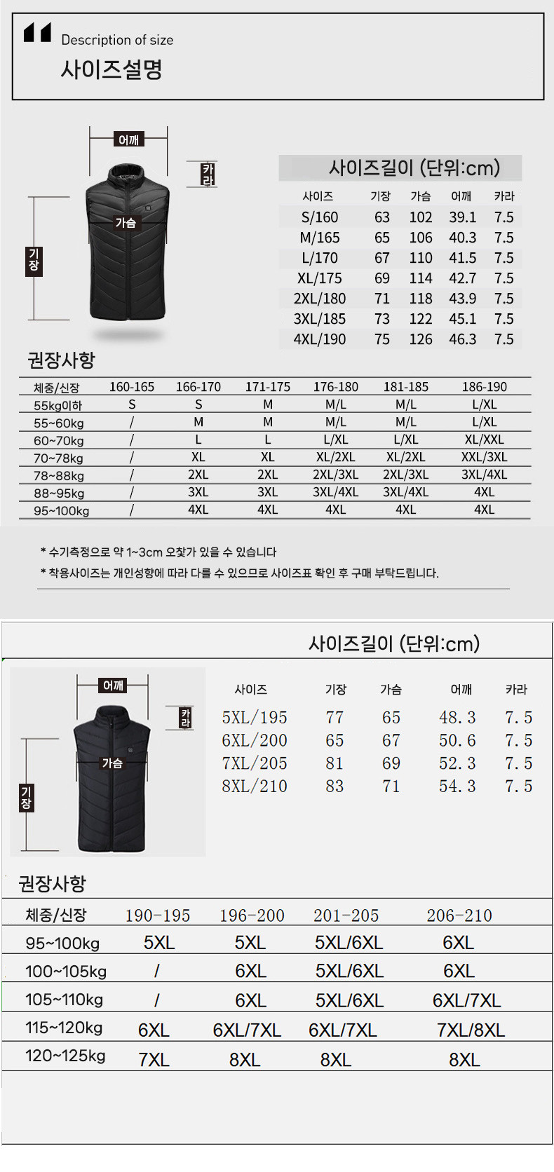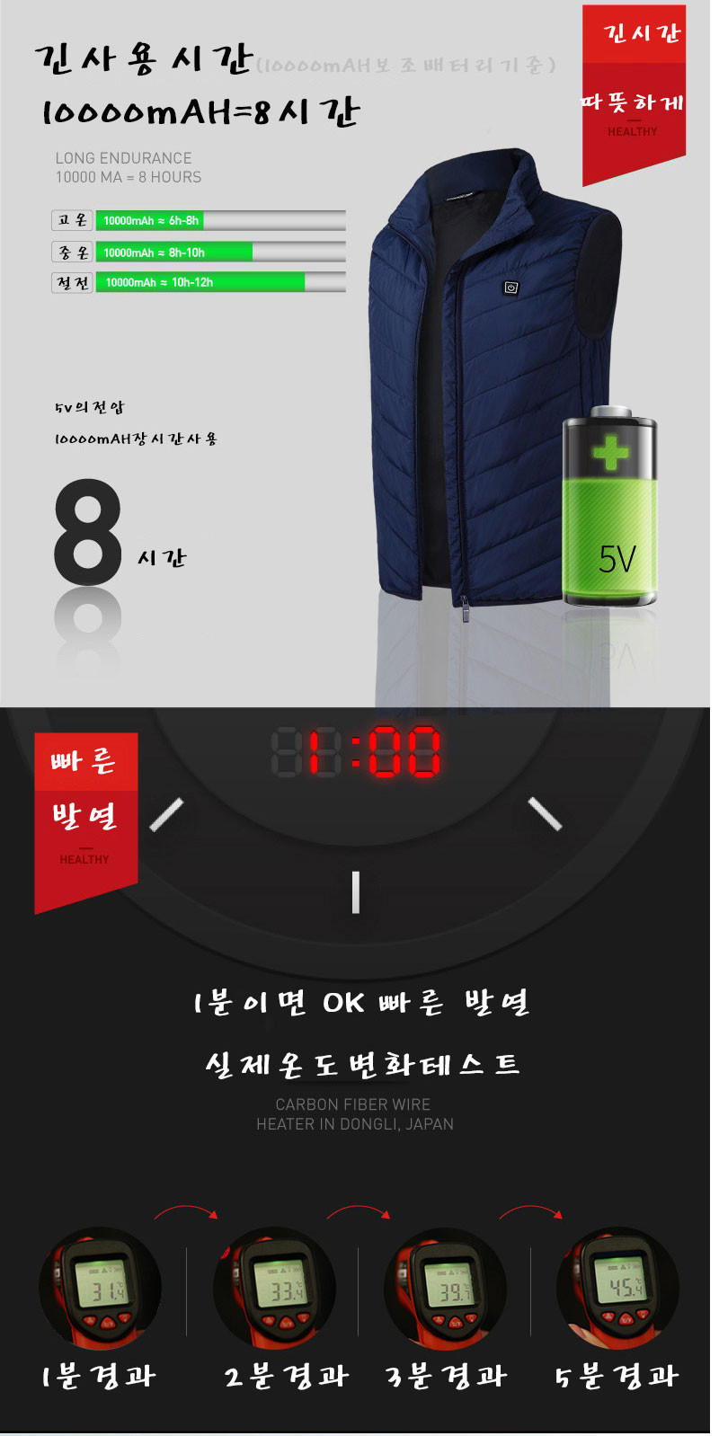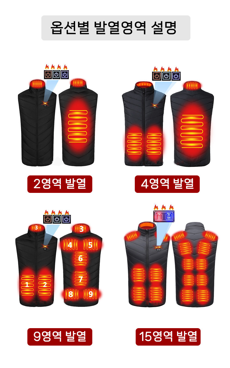 USB 발열 조끼 온열 열선 방한 보온 패딩 빅사이즈 S~6XL
