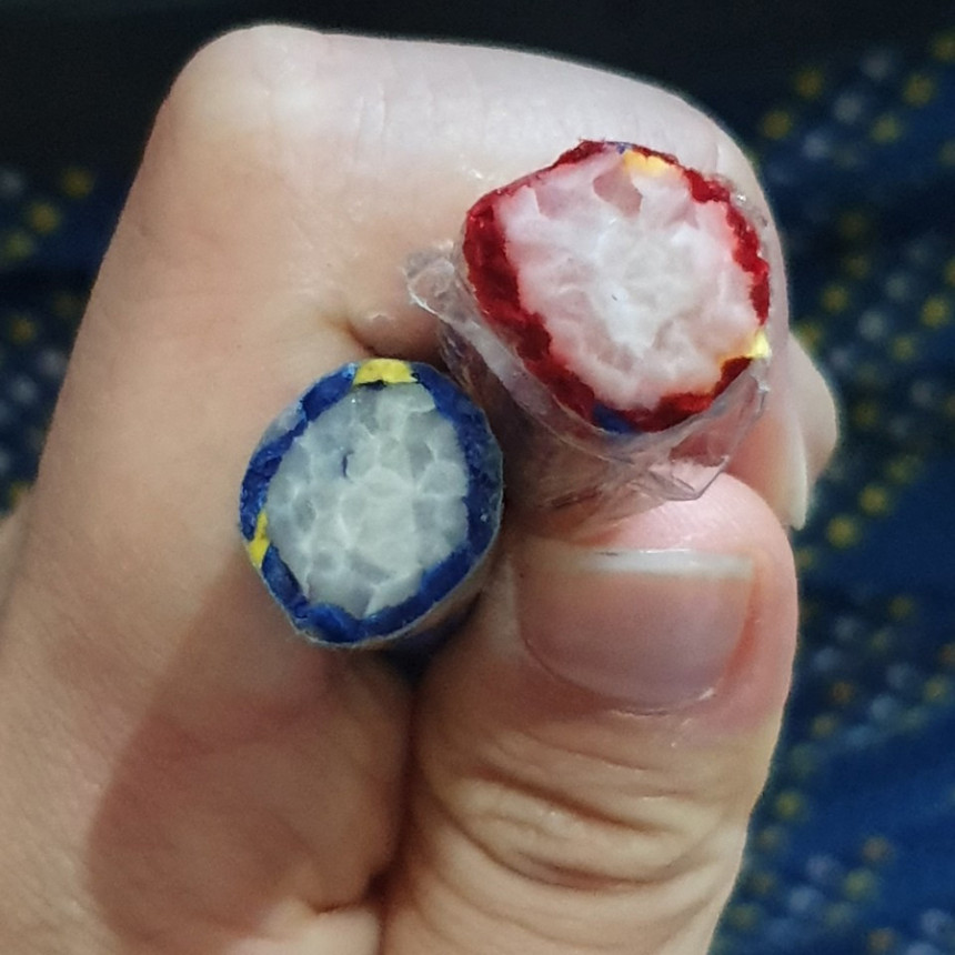 왼쪽부터 형광연두, 오렌지, 빨강, 레몬 비교