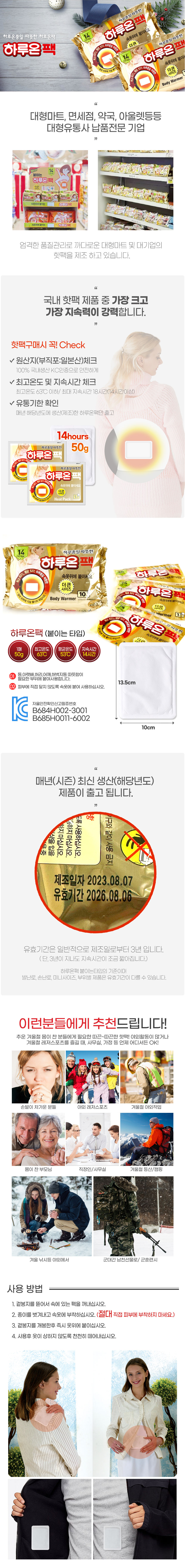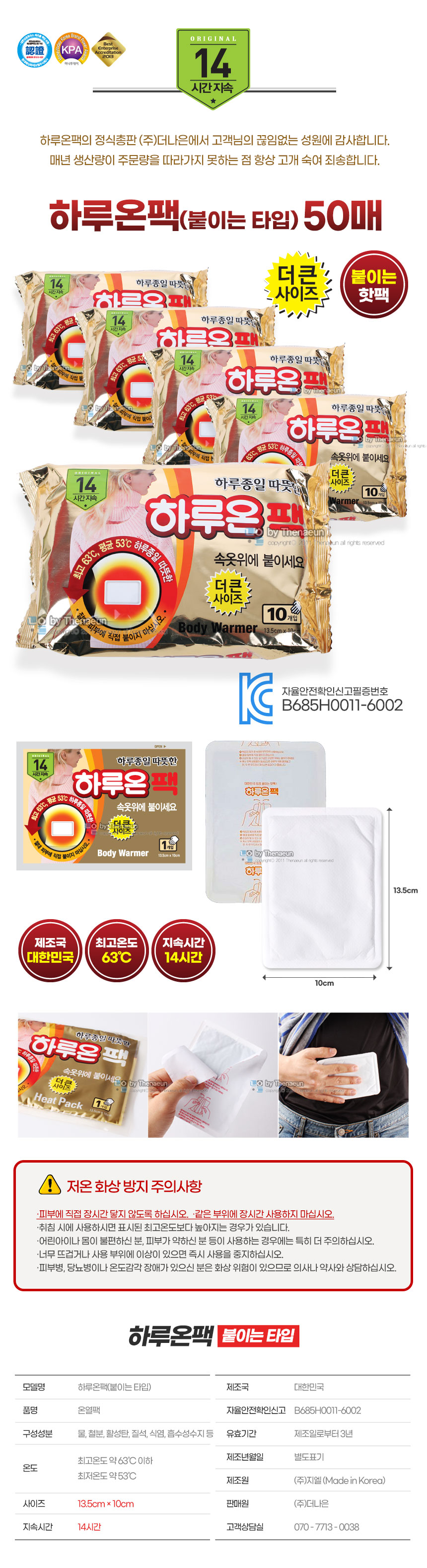 국내총판 붙이는 핫팩 하루온팩50매 / 2024년 이후 생산제품