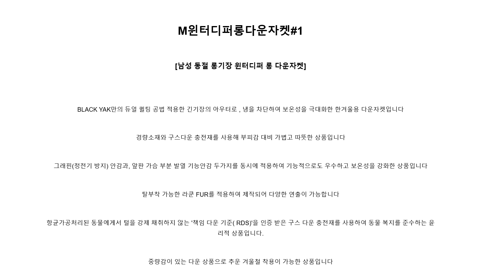 블랙야크 남성 겨울 가볍고 따뜻한 롱 구스패딩 M윈터 디퍼 롱 다운자켓 1BYPAW3014