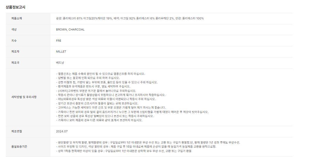 반품 주소  경기 시흥시 장현능곡로 155 모다아울렛 4층 밀레