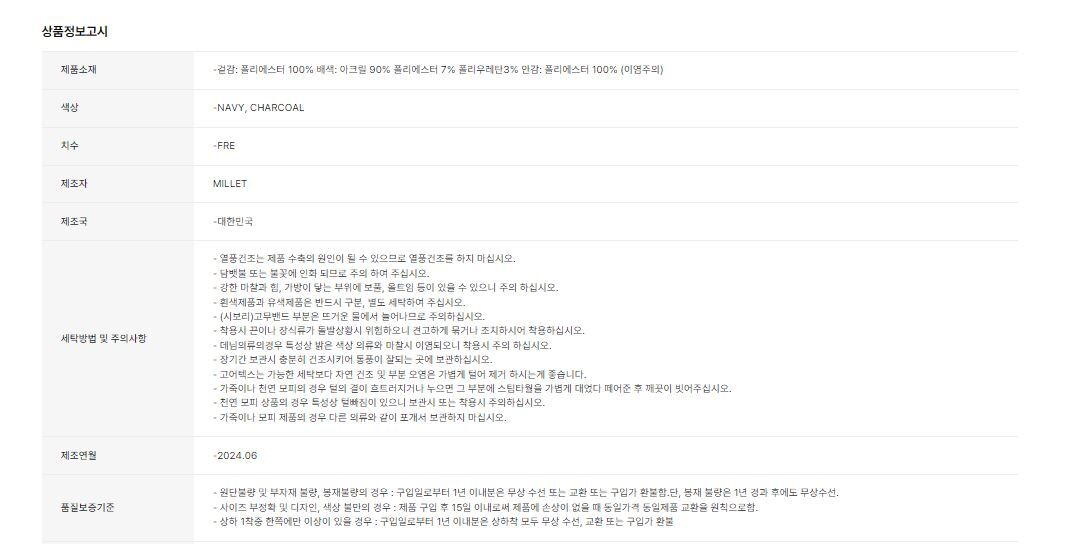반품 주소  경기 시흥시 장현능곡로 155 모다아울렛 4층 밀레