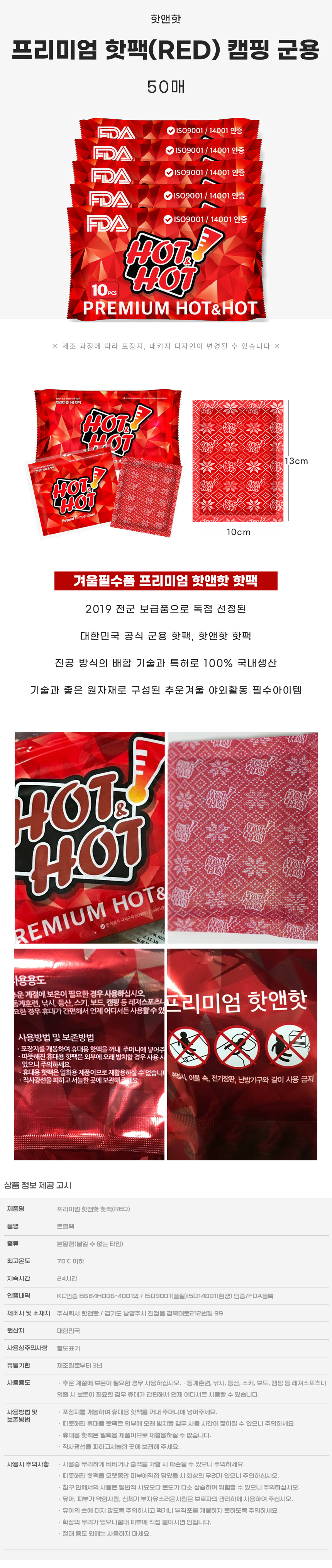 프리미엄 핫팩 (RED) 50매 캠핑 군용