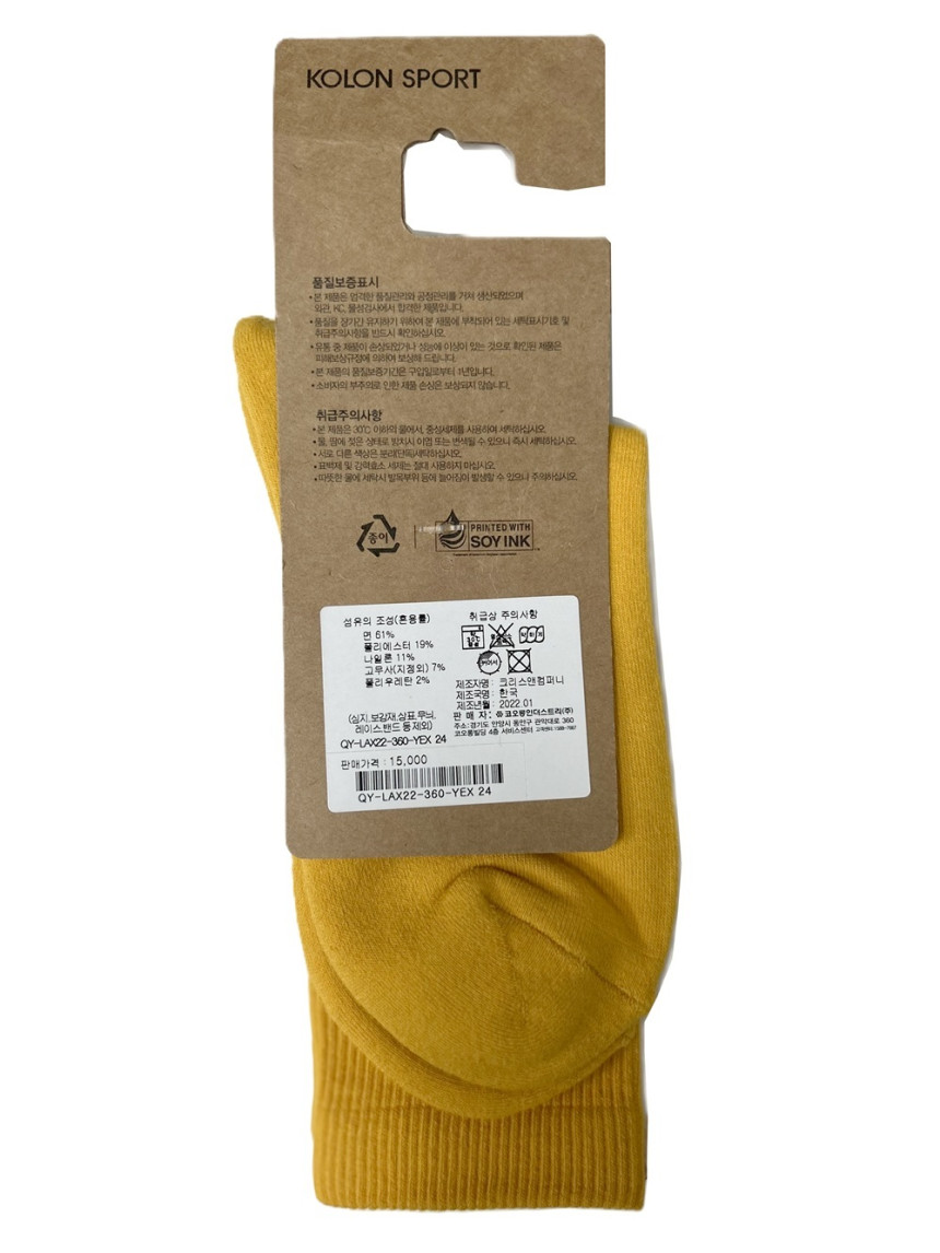 * 소재: 면 61%, 폴리에스터 23%, 나일론 8%, 고무사(지정외) 5%, 폴리우레탄 3%