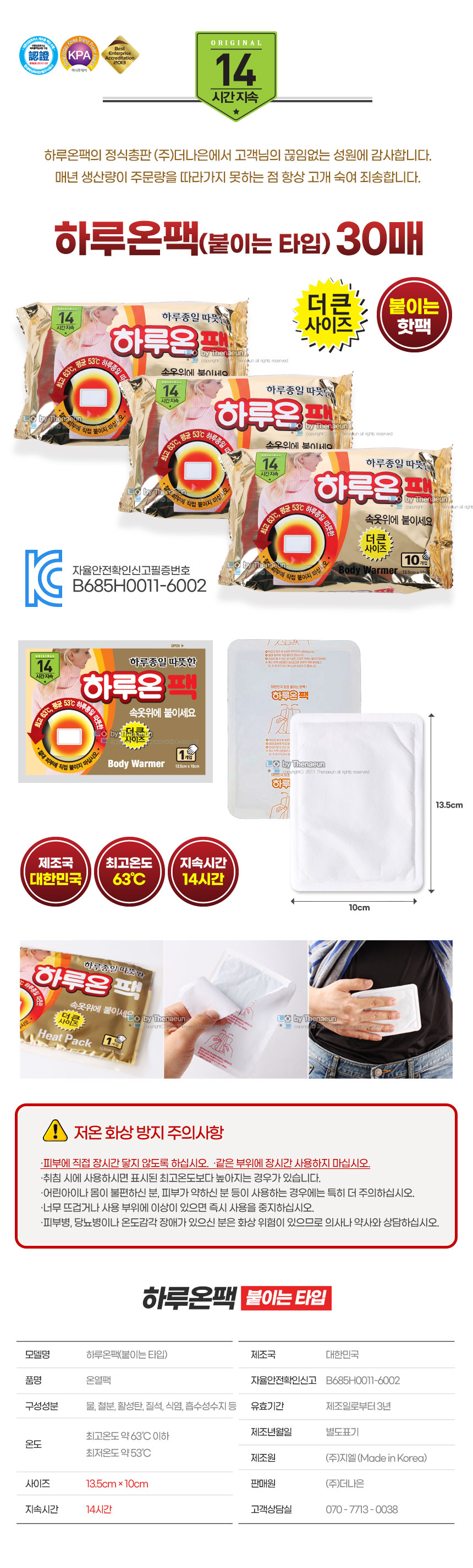 국내총판 붙이는 핫팩 하루온팩 30매 /2024년 이후 생산제품