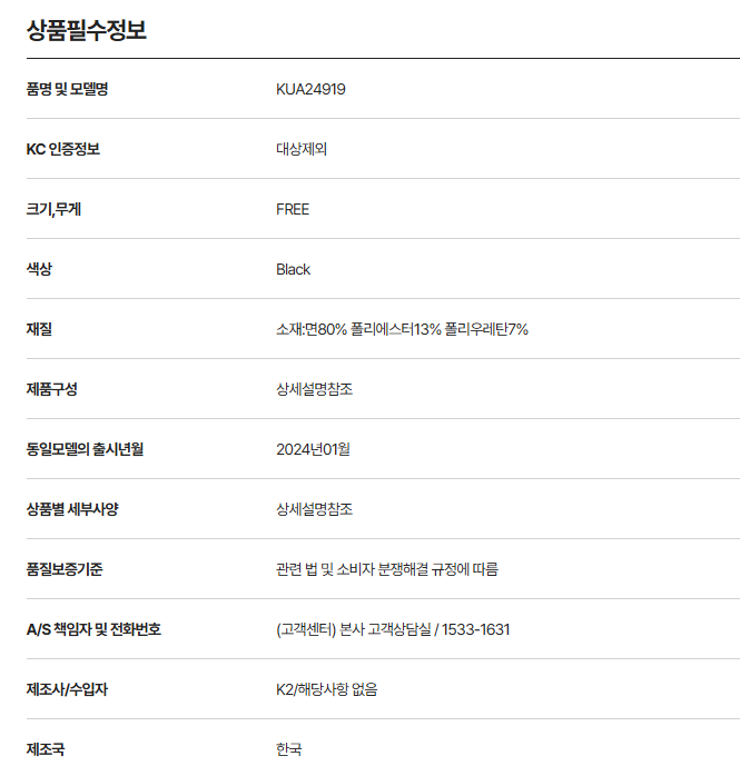 AK플라자 K2 공용 기능성 HIKE 손목아대SET (Black) KUA24919