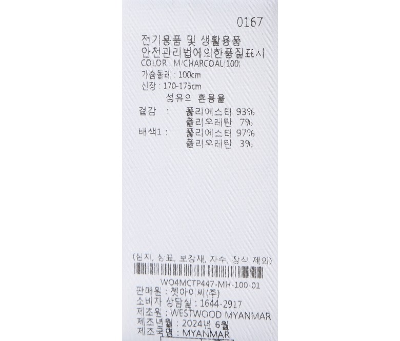 (롯데백화점)남성 겨울 투톤 기모 폴로 반집업 카라 긴팔 티셔츠 WO4MCTP447