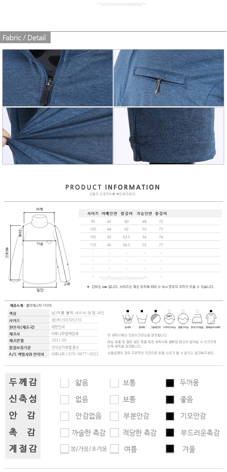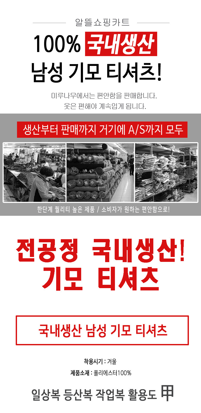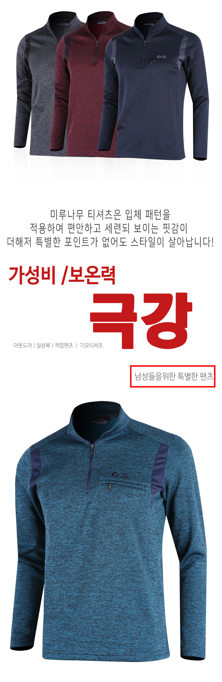 1+1 국내생산 남성 겨울 기모 등산복 작업복 남자 기모 티셔츠 상의 투보카