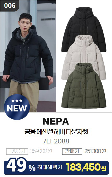 네파 겨울의류 베스트 50종 다운/자켓/티셔츠/팬츠/방한용품