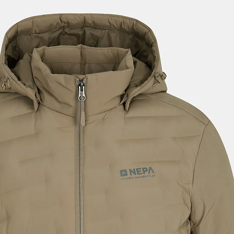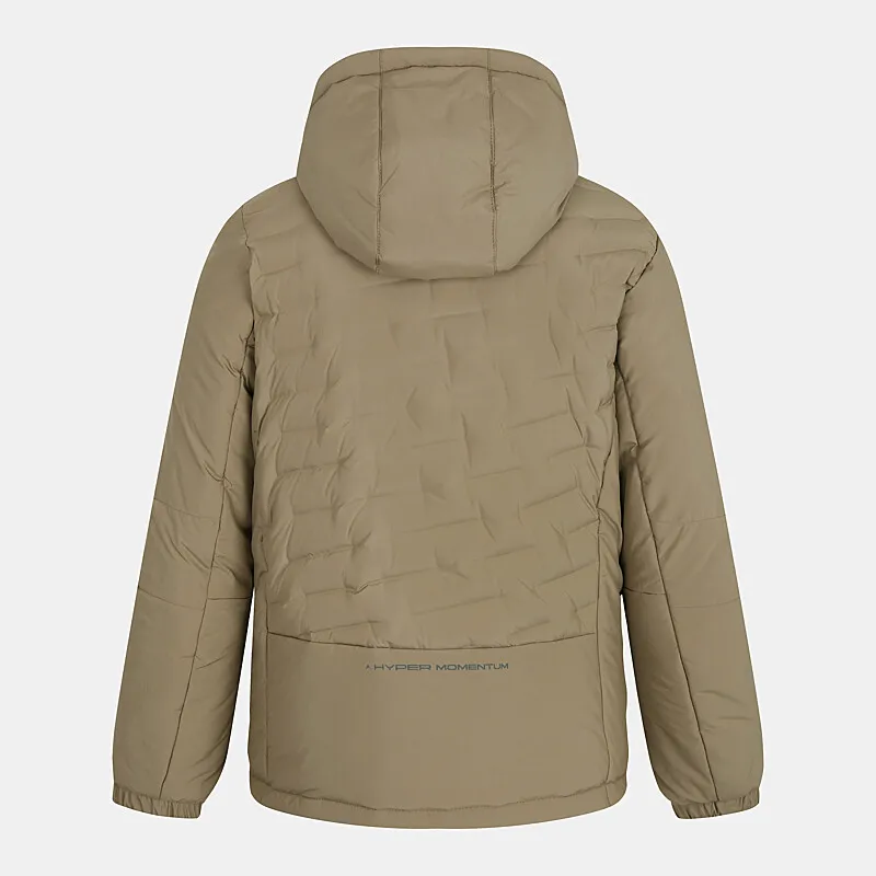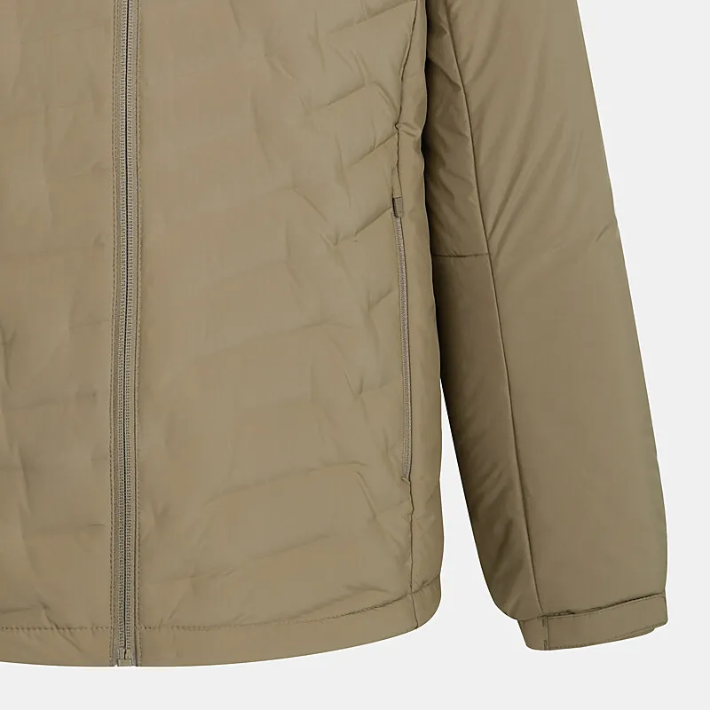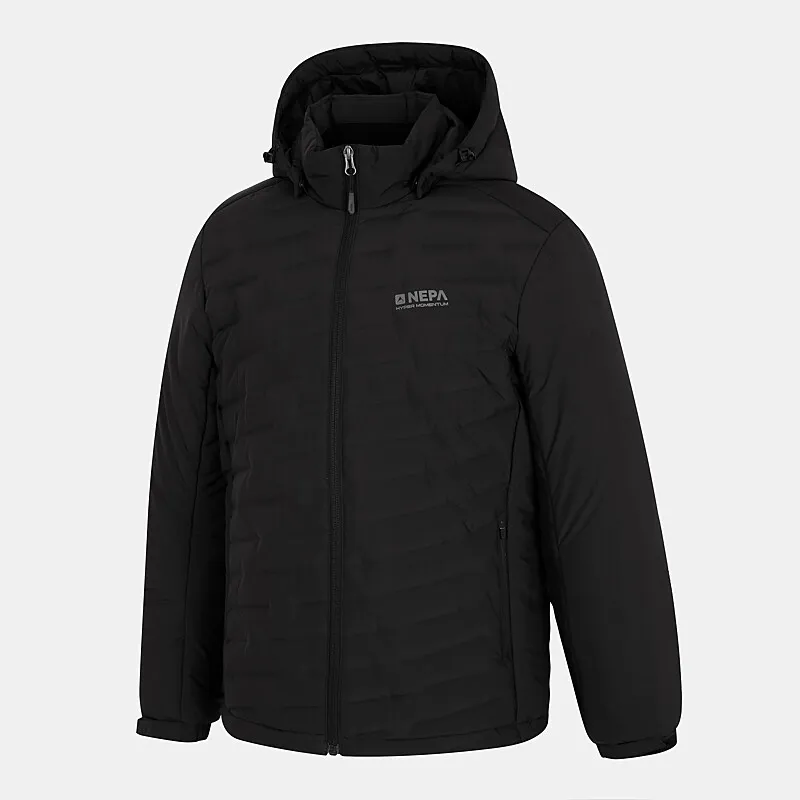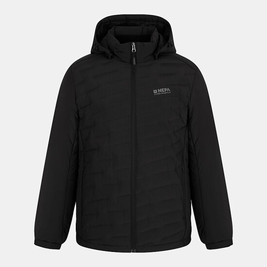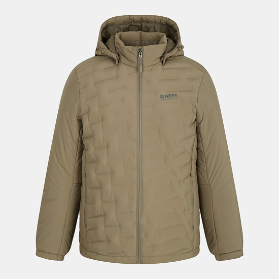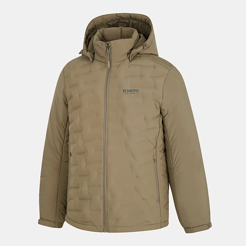- 간절기 시즌 퍼포먼스 아우터로 적합한 하이브리드 튜브 다운 자켓- 가슴 부분과 등판으로 튜브 원단을 적용 보온성을 강화- 후드,소매부분은 솔리드 원단으로 패딩을 적용한 상품- 후드 탈부착 형태로 다양한 착장이 가능함- 전면 하단 지퍼형 포켓으로 수납성 강화- 등판 하단에 재귀반사 기능이 있는 로고 프린트 적용- 충전재 : 구스다운 80:20 (100호 기준 70G)