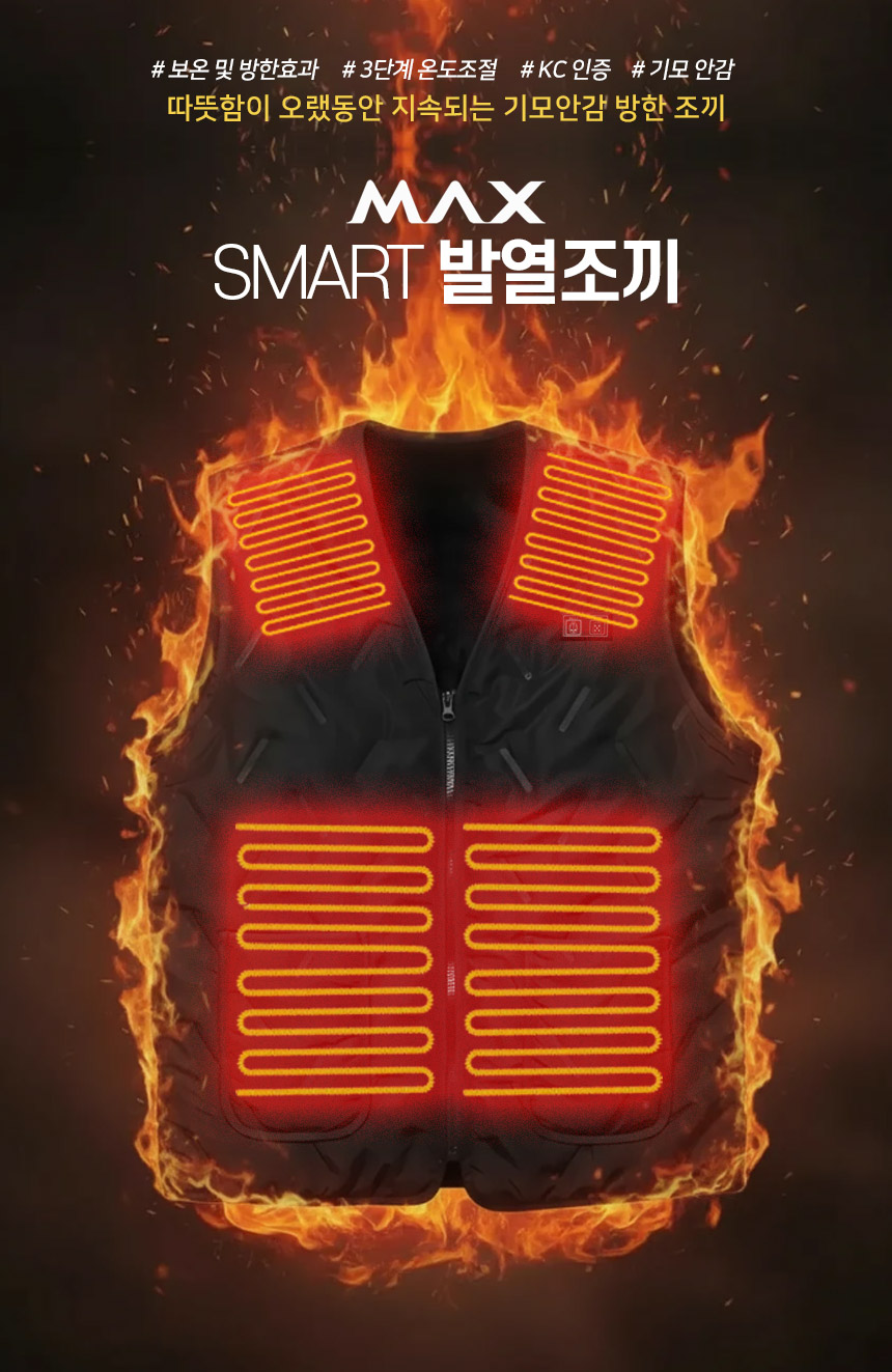 MAX SMART 발열조끼 3단조절 기모안감 온열 조끼 열선 겨울 작업복 방한조끼