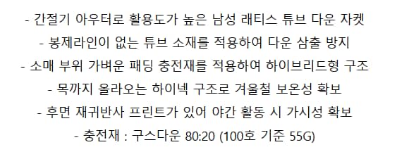 남성 간절기 경량 튜브 다운 자켓 7J12021